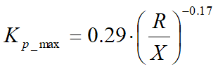 Kb is de stroomattenuatiefactor. De vlamboogstroom is gelijk aan de vermenigvuldiging van de minimale kortsluitstroom en de stroomattenuatiefactor. De typische waarde van Kb is 0,5. Kp is de coëfficiënt van het vlamboogvermogen. Het vlamboogvermogen is gelijk aan het product van het kortsluitvermogen en de Kp-factor. De waarde van Kp kan handmatig ingesteld worden (indien het vinkje max niet gecheckt is) aan de hand van Tabel A1.1 van de ISSA. Als het vinkje max gecheckt is, wordt de coëfficiënt volgens de volgende formule berekend (afhankelijk van de R/X verhouding van de kortsluiting):