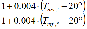 waar Tref,° is de referentietemperatuur (die bij het kabeltype gespecificeerd wordt) en Tact,° is de actuele temperatuur (die in de Opties gezet wordt).