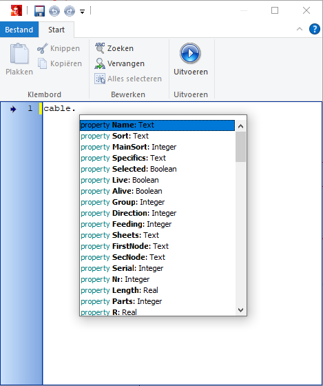 De functie "code completion" helpt de gebruiker met het verder invullen van de attributen van objecten. De functie wordt geactiveerd indien na een object een "punt" wordt ingetypt. De attributen kunnen worden gekozen uit een lijst die achter het object wordt afgedrukt. Indien de eerste letters van het gezochte attribuut worden ingetoetst, verkleint de lijst tot de gewenste deelverzameling.